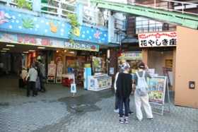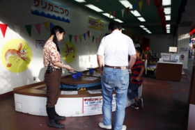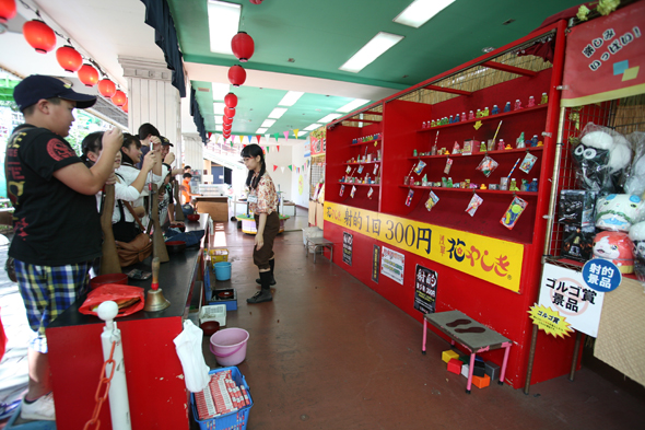 为庆祝古稀之年过山车上涂满了红色,车身上写着[祝•还历]的字样。 浅草花屋敷游乐园里最具历史的游乐设施是惊魂屋。 令人怀念的旋转木马深受携家人前来的游客们的喜爱。 令人眷恋的打靶场 游乐园里有一个庙会角,在有庙会的日子一定会有打靶场,那些第一次体验打靶游戏的小朋友们,很快就玩得入了迷。 大人或一家出行的人们,也很兴致勃勃地玩着各种出现在昔日庙会上的游戏节目。 花舞台在花舞台上,经常举办舞蹈和演剧、以及职业摔跤等各种活动,到访者中还有不少拖家带口的海外游客。 为庆祝古稀之年过山车上涂满了红色,车身上写着[祝•还历]的字样。