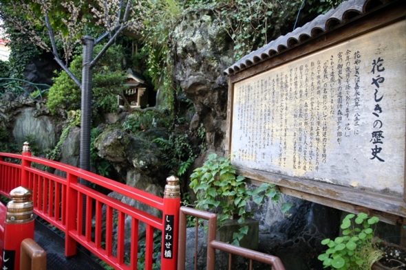 Shiawase Bridge located in the middle of the garden, which retains remnants of former Hanayashiki that was built as a flower garden.