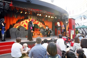A variety of events, including dancing, theatrical performances and professional wrestling, are held on the stage. Tourists from abroad also enjoy the events.