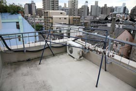 在这个有三层的建筑的屋顶上,设有晾衣台。从屋顶上能够眺望谷中以及千驮木一带的风景。