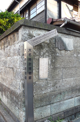 大名时钟博物馆的正门旁立着一个《胜山藩下宅邸遗址》的石碑。在这附近因为有美作国(现冈山县)真岛藩下的宅邸,所以曾经被称为谷中真岛町。藩主三浦在庆应年间(1865)将藩名胜山改为美作国的郡名真岛。另外因为这里连着上野高台地区的爱染川流域,所以坡道很多,大名时钟博物馆就坐落在其中一个叫做三浦坡的坡顶处。