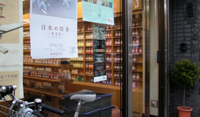 画材店的橱窗里摆满了装有各种各样色彩丰富的日本画岩石颜料的瓶子,为街道平添了亮丽的色彩。