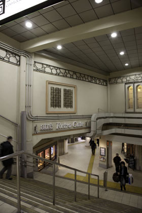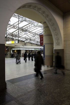 現在の上野駅の駅舎は、昭和5年(1930)の上野-鶯谷間の震災復興工事の際に建設が開始され、7年(1932)に新たに再建されて開業しました。当時の鉄道省(酒見佐市)等の設計による乗降口と降車口が上下に分離された鉄筋コンクリート2階建ての建物が基となっています。この地域は、本来地盤が軟弱で湧水が多く防水工事などに腐心されたと言われます。現在でも、地盤の改良や建物の維持改善が行われています。昭和60年(1985)には地下駅が建設され、続いて新幹線の開業により上野駅の機能は、大きく変わりました。2階に置かれていた駅務機能は1階に移転し、跡には商業施設が新たに整備され、いわゆる「駅なか」とも呼ばれる駅舎の複合化が東京都内の駅の中でも早くから始まりました。