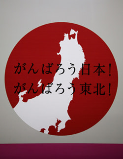 秋田新幹線「こまち」の列車に貼られた「がんばろう日本! がんばろう東北!」のステッカー