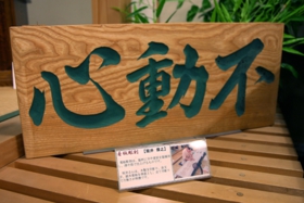 這是木雕招牌,最近制作招牌很多都采用塑料制作了,坂井先生一直保持著木雕制作,如今倍受青睐,同時他也在制作名牌等。