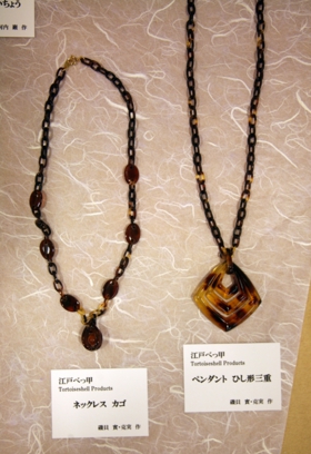 워싱턴 조약 이후에 대모갑의 사용이 어려워졌습니다. 안경 따위는 역시 대모갑 세공 제품이 좋습니다. 안경을 쓰고 있다 보면 흘러내리는데, 대모갑은 그런 경우가 없어요.