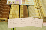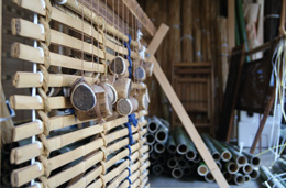 基本上是客人需要什麽我們做什麽。主要分成4大類,首先是在室外挂的竹簾,主要用做防曬或防視線。其次是挂在室內的竹簾,在神社佛閣中使用的禦簾(簾子的敬稱)以及日式房間裏用的簾子都包括在內。現在也有挂在窗戶上當窗簾的簾子。其他還有一些小簾子,像做紫菜卷用的,還有更小些的放日式點心用的托盤等。最近也有當作用餐墊和杯墊的小簾子。還有就是部分運用的了,比如有在屏風上挂簾子的,還有把簾子糊在推拉門上的等等。再有就是根據客人的具體需要告訴我們在哪些地方上需要用,我們就按要求給他們做,類似這樣有特殊需求的制作任務還爲數不少呢。