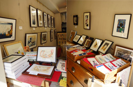 在台東區,把工作室兼當畫室和店鋪對外開放的現象非常普遍。(要查詢)我的工作室也是一樣,有很多人是看著我們發出的宣傳材料後專程來訪的。