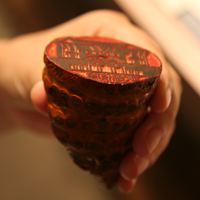 首先,不同的木头其硬度和形状也都会各不相同,最重要的是木头的纹理完全不同,木头的手感非常好,它会逐渐呈现出艳丽的颜色木质也越来越好,小枝游印举世无双,因为每一个都是手工制作,不会作出完全相同的形状或图案的。虽然材料坚硬,雕刻起来并不容易,但是雕刻图案比其单纯刻字,有意思多了。一般的印章,圆形的大小都是有固定尺寸的,现在都是用机器雕刻,用机器刻的印章就没有多大意思了,因为每个都是一模一样的。