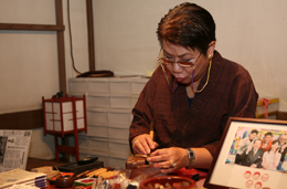 是的,是一名普通的在街上给人刻印章的人。雕刻过黄杨、象牙和水牛等。父亲是在我继承父业后的3、4年后倒下的,现在叫做脑栓塞,左半身麻痹也就不能再从事工作了,所以后来我几乎是自学的,正是这样我才想出了这样独具特色(小枝游印)的印章,要是一直规规矩矩的做估计不会从一名普通的刻印章的脱胎换骨成现在这样了。