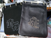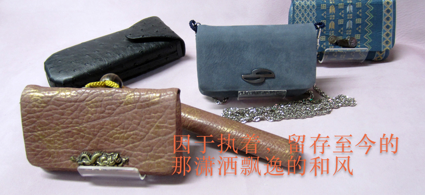 我是一边研究着江户时期使用过的箱包进行制作的。本来我这里是专制香烟包的,也做像巾着袋(注,类似中国的荷包,香囊的小口袋,开口处有两根反向的绳左右一拉就可以收紧,两只手各执袋口向外一扩又能打开。)和合切袋那样能手提的包,主要是选择一些能营造出江户气氛的东西来制作。
