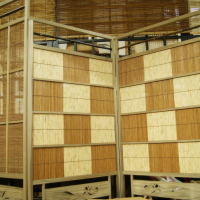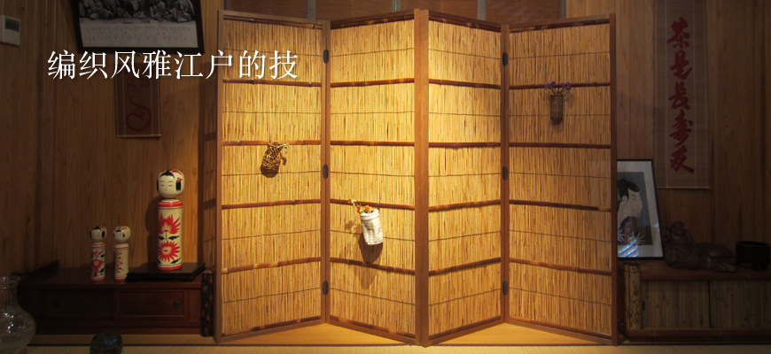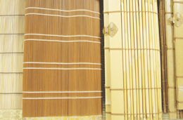 基本上是客人需要什么我们做什么。主要分成4大类,首先是在室外挂的竹帘,主要用做防晒或防视线。其次是挂在室内的竹帘,在神社佛阁中使用的御帘(帘子的敬称)以及日式房间里用的帘子都包括在内。现在也有挂在窗户上当窗帘的帘子。其他还有一些小帘子,像做紫菜卷用的,还有更小些的放日式点心用的托盘等。最近也有当作用餐垫和杯垫的小帘子。还有就是部分运用的了,比如有在屏风上挂帘子的,还有把帘子糊在推拉门上的等等。再有就是根据客人的具体需要告诉我们在哪些地方上需要用,我们就按要求给他们做,类似这样有特殊需求的制作任务还为数不少呢。