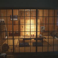 在工作室的2层巧妙的运用帘子做成展示室。