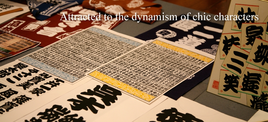 Although, nowadays, pieces of printing type in the old days become fonts and there are a variety of characters and letters, to which lettering is applied using PCs, handwritten characters are still powerful and impressive as if they leap to our eyes. There are scenes in which characters stand out. Kantei-ryu Moji is used for Kabuki, Sumo Moji is used for Sumo, and Yose Moji is used for "Rakugo," or traditional Japanese comic storytelling. I am attracted to the styles of these various characters, which were born out of popular cultures of Edo and developed for the general public.