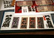 I was born in Minato-cho, Chuo Ward, and raised in Matsuba-cho (present-day Matsugaya), Taito City, so I have seen Edo characters in various places and scenes from a young age. When I saw cards that were offered to shrines and temples and characters written on "happi" coats, I was vaguely hoping that I could write those characters. I found an article in a magazine that introduced a class of Ukon Tachibana, a Yose character calligrapher and the head of the Tachibana School, so I contacted the shool immediately. Then, I enrolled in a class of Ukitsu Tachibana, who is may master, and learned Yose characters. I was also interested in Senja-fuda, so I belonged to Toto Nosatsu Mutsumi (Nosatsu, Tachibana-ren). I had a greater opportunity to get a close look at Edo characters written on a variety of old cards through communication with many members of the association, and became more eager to write the characters.