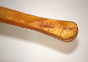 べっ甲に使用するものは、タイマイじゃないかなあ。他の材料だと貼り合わせがうまく行かないようです、アオウミガメとタイマイを掛け合わせた細工もありますが、貼り合わせの付きが悪いので今は使わないですね。もっとも戦前は輸入禁止だったので、馬や牛の爪を使ってべっ甲職人は作っていたようですね。江戸時代から、べっ甲は禁制品だったので、昔のものでもほとんどべっ甲のものはないんですよ。色は似ているので、一般の方では判らないんですね。大名ぐらいの身分の高い人しか、べっ甲製品は持てなかったんです。また、べっ甲は虫が食って劣化してしまいますから、倉庫にしまっていてもなかなか残っていないんですね。