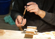 全てです。まあ別に新しい物は特にありませんから。べっ甲屋さんは機械も結構使っています。ただ、手でも行わなければなりません。貼り合わせなどの工程はどうしても機械では出来ません。その辺が量産化出来ないところかもしれません。