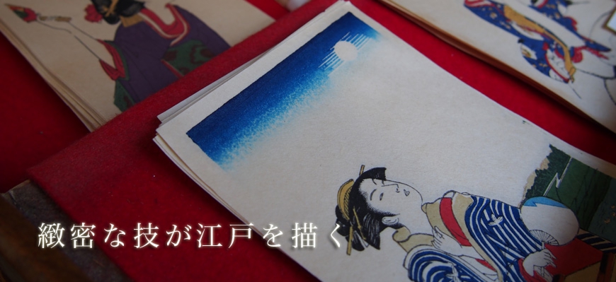 版木は昔はあまり大事にしなかったんです。板が高価だったので、摺り終わると削って平らにして違う絵を彫ったりしていました。そのため、当時の版などはほとんど残っていないですね。また、版画自体も江戸時代は高級品という感じではなくて、出版物みたいな扱いであまり大事にされてなかったんで、海外にみな流出してしまって、そこで残っているようなことが多いですね。そのため、古い絵柄の作品は、新たに模して彫らなければなりません。