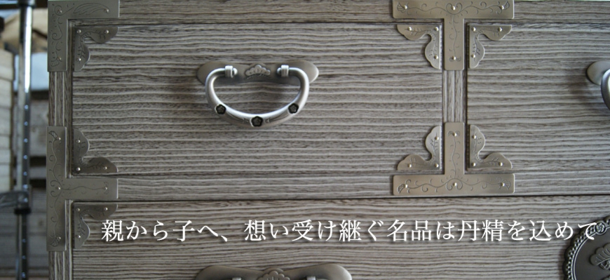 若い頃に嫁入り道具で自分が持ってきた物が大分傷んでしまったので、30年、40年経ってからもう一度良いものが欲しいということで、50代、60代の方が買い直されることが多いですね。昔はたんすといえば、桐たんすしかありませんでした。桐たんすと言っても、他の木を使った桐たんすもたくさんあったのですが。