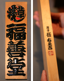 형태로서 후세에 남는다는 것은 기쁜 일입니다. 가령 손님에게 납품하고 몇십 년이 지나서 무슨 일 때문에 그 장소를 방문했을 때 제 아들이나 손자가 저나 선대의 작품을 보았을 때, 저것은 아버지와 할아버지가 만든 것이라고 알 수 있다면 멋진 일 아닐까요. 제 아버지 작품으로 기억에 남는 것으로는, 이와테현의 모리오카에 있는 하치만사마에 도쿄에서 여러 사람이 기증한 현판이 있습니다만, 예전에 그곳에 우연히 갔을 때 아버지 솜씨 같다고 생각하면서 보고 있자니 우연히도 아버지의 이름을 발견 적이 있었습니다. 연대를 계산해 보니 독립하시자마자 맡은 일이었지요. 그래서 실물을 보면 아버지가 머리에 떠올라 지금 자신의 나이와 비교하면서 작업을 어떻게 하셨을지 상상을 하는 경우도 있었지요. 이렇듯이 아버지의 작업이 지금도 형태로 존재하고 후세까지 전해지는 간판이란 매력이 있습니다. 자신이 마음을 담아 해낸 작업들이 형태로 남고 사용되는 모습을 보는 것은 이 일을 하면서 즐거움이자 기쁜 일이지요.