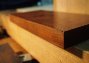 뽕나무는 원래 황색 재질인데 닦거나 바르거나 하지 않아도 40년, 50년이 지나면 이렇게 멋스러운 갈색이 됩니다. 미쿠라지마의 뽕나무는 색상이나 윤기가 다른 지역의 재료와는 역시 달라요. 이 미쿠라의 뽕나무는 오래 되어도 아름다운 색으로 바래가지요. 최근에는 좀처럼 시장에 나오지 않는데 뽕나무를 벌채하는 분들이 모두 나이가 들었기 때문입니다. 벌채는 힘들고 위험한 일이라 요즘 젊은 사람들은 좀처럼 취직하지 않습니다. 뽕나무는 뿌리 부분의 나뭇결이 가장 아름다워서 뿌리부분부터 파내는데, 이 작업이 매우 어렵습니다. 숲 위에서 헬리콥터 등으로 매달아 주위를 파서 잘라내야 하기 때문에 매우 손이 가지요.