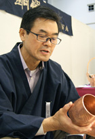 ‘겐스이’(건수)라는 ‘유코보시’(다도에서 찻잔을 씻은 물을 넣는 용기)와 찻주전자 세트가 있었습니다. 이곳에도 찻주전자만 만드는 기술자가 2명 정도 있었는데 젊은 사람들은 그것만 일년 내내 두드려 만들었지요. 거기에 칠을 하는 기술자가 니가타에서 와있었는데 꽤나 고령이었지만 이분도 계속 옻칠만 했습니다.