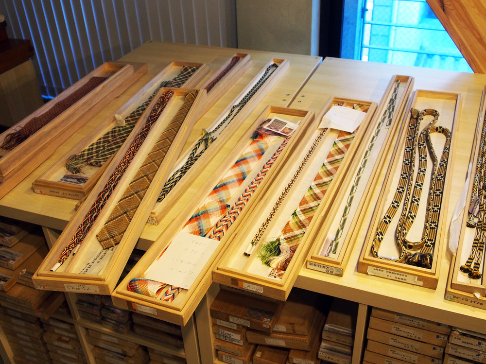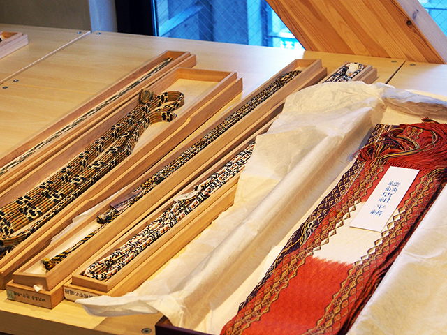 該公司對國內外各種各樣的組紐及圖案花色進行了廣泛調查,並將其編制再現後保管收藏,這些資料將會是創作新作品和新形式的契機。