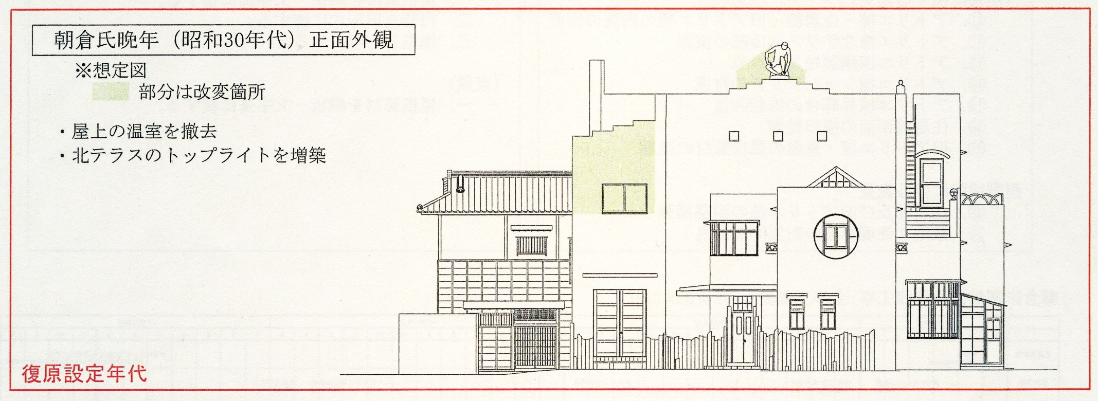 Also, the studio wing's exterior wall is painted black, and white can be seen in the courtyard. Here is also a contrast between black and white. As to the residential wing, new materials were already applied to the walls, so we probed traces of the original walls that Asakura actually made. As a result, it turned out that red and black sand, fibers, mortar, and mortar mixed with lampblack were used for the walls. (continued in the lower column)
