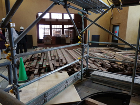 山田 : 保存修復工事なので、現在用いられている材料を補完したり、不足している物については材料を調達したり、入手できないものについては、類似した材料を用います。今回は、現存する材料を再利用するという方法を用いました。そのため、一般の解体工事ではなくて、それぞれの材料を解体しながら番号を振るという作業を行っています。