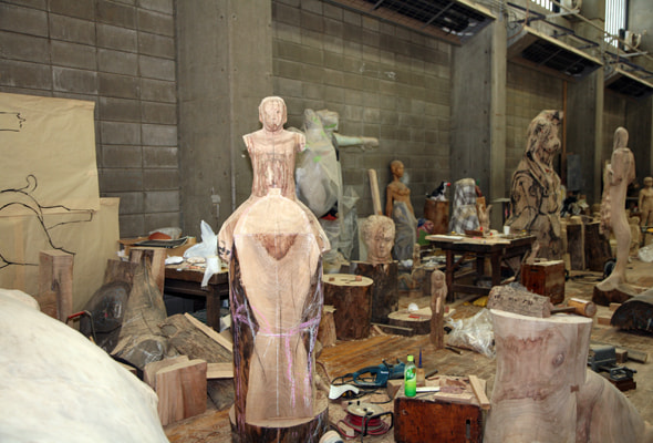 聽深井教授說,學生的作品沒有固定要求,可以任意作自己喜歡的東西。碩士研究生有畢業作品展,作品展示在大學美術館和這個工作室裏,因為在大學美術館裏展示雕刻作品的空間比較狹窄,作品在制作時限定于一個房間內能夠放得進去的尺度,用一年的時間去制作完成。那些大到房間內都擺不進去的作品,只好展示在室外和大學美術館前。學生們雖屬于不同的研究室,但是工作室不分你我可以共同使用。深井老師的專業是木雕,在他的研究室裏,有從本科3年級到博士生,石雕和金屬的研究室也是一樣的情況。但是在塑像專業情況略有不同,碩士研究生和本科生在不同的房間進行創作,2年級後期課程開始有選擇實習課,有7成的學生使用的是規定素材。在日本,從素材上定向的比例比較高,已經形成了這樣的一個教育體系。 (下段繼續)