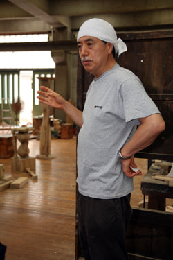 学生们能够从早晨到夜晚都专心进行自己的创作,现在,把喜欢把自己感兴趣的主题用木头制作出来的学生增多了。在教学上,先让学生自己去思考,然后讨论他思考的东西是否有意义,从而激励学生。如果只是抄袭从前的东西,当想做新的事情就会不知如何下手,让他们每个人自己去思考,看自己的雕刻观是否符合时代,是否能包含有深度的思想。另外,在素材选择上,使用最容易雕刻的,也比较容易到手的日本国产樟木。(下段继续)