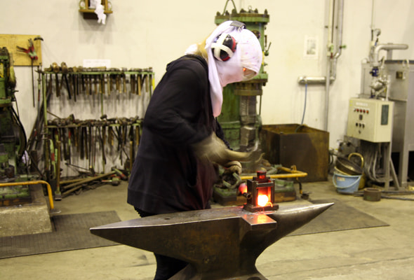 现在学生的半数以上都是女学生,尽管是象锻造这样的体力劳动和要使用各种金属加工工具进行作业,仍然有女性学生的加入。(下段继续)