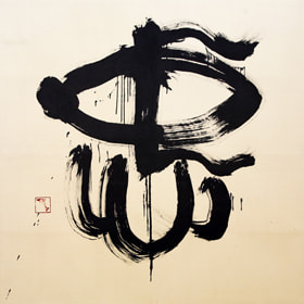 宮田学長の書 平成21年度卒業式で宮田学長が揮毫した「忠」の文字。大胆流麗な筆致の書にイルカの落款が捺されています。