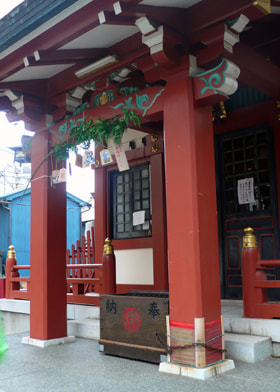 在一叶纪念馆的附近,有吉原神社(上)、新吉原花园池(辨才天女)遗址(右)等。