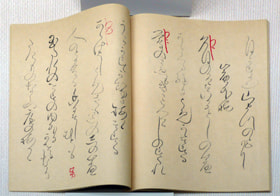 「詠草」(明治24年(1891)12月から25年(1892)8月の作、全15葉。文中の朱筆の評と訂正は、歌塾「萩の舎」を主催していた中嶋歌子の筆。