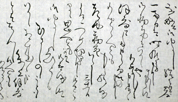 一葉の書は、中嶋歌子とその門下に踏襲された加藤千蔭によって編み出された「千蔭流」に依っています。