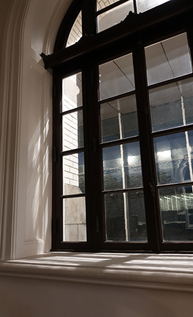 磚砌棟的窗戶,原封保留了明治時代修建之初的玻璃窗,透過明治時代表面略帶凹凸的玻璃,光線變得絲滑柔和。