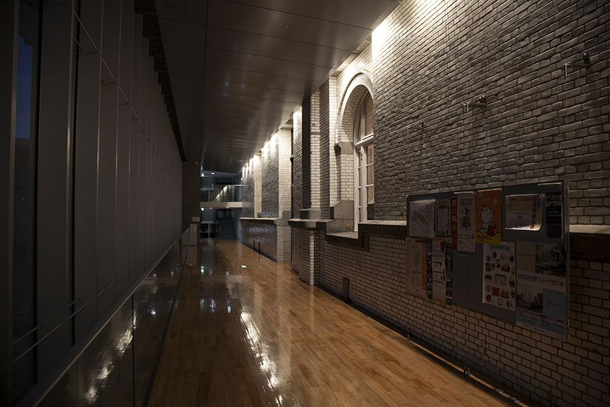 Glasses of those days when the brick building was founded are still used for the windows. Soft light come into rooms through slightly rugged glasses made in the Meiji Period.
