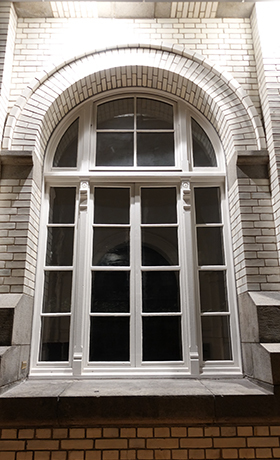 벽돌 동의 창에는 메이지 시대 창건 당시의 유리가 남아 있습니다. 약간 요철이 있는 메이지 시대의 유리를 통해 부드러운 빛이 들어옵니다.