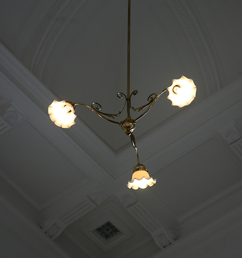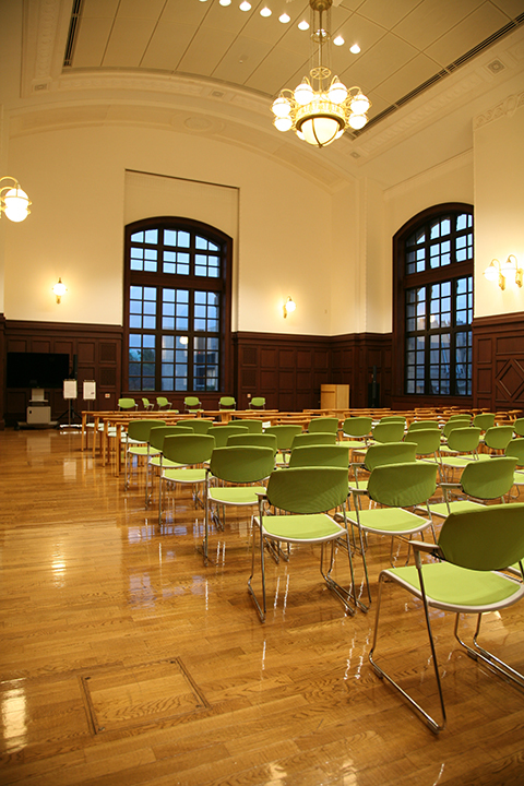‘세계를 아는 방’은 구 제국도서관의 시절에 가장 격식이 높은 귀빈실로 사용되어 오랫동안 일반적인 이용에 제공되지 않았지만, 국제 어린이도서관 개관과 더불어 개방되었습니다. 천장과 벽의 복구는 메이지 시대에 사용된 조개회, 석회, 홍조, 여물 등을 혼합한 공법으로 복원되었습니다. 또한, 샹들리에는 도쿄전력에 보관되어 있던 실제 부품을 토대로 놋쇠에 금도금하여 복원되었습니다. 그리고 쪽매붙임 방식의 바닥은 밝은 나뭇결의 느티나무, 어두운 갈색의 모과나무, 그리고 검은색 흑단이 아름다운 문양을 이루고 있습니다.