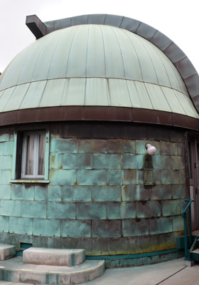 Ikemoto : This is a dome for astronomical observation. This plate and old graffiti are things reminiscent of bygone days. Japan Gallery (former Main Building) was constructed in 1930, and the dome, which is placed on top of the building, was completed in October 1931, one year after the construction of the building. Since the end of that year, many people have visited the dome to observe stars. When the dome was completed, a 20cm equatorial refracting telescope was placed in it, through which astronomical observation was conducted. At that time, the dome was manually rotated, so it was difficult to see many stars. However, the dome was improved to move electrically in 1941, making it possible to observe several stars and others during one event of astronomical observation.(continued in the lower column)