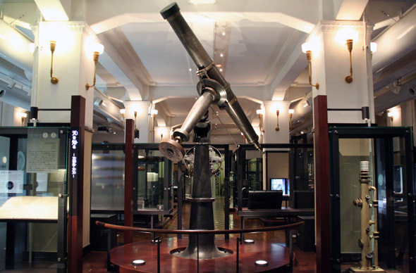 On the roof of the Japan Gallery, there is an old-style astronomical observatory that is still in active service. There are two iron plates placed at the entrance, the inscriptions read as Twenty centimeters equatorial telescope, designed, manufactured and set up by NIPPON KOGAKU K.K. (abbreviation), completed in October 1931" and "Equatorial telescope room, donated by Chiyomatsu Nakamura from Mito City." There are also some scribbles that looks like childrens’ writing scratched on the surface of its outside wall, the characters include names and some old dates such as "Showa 21" and "1950."