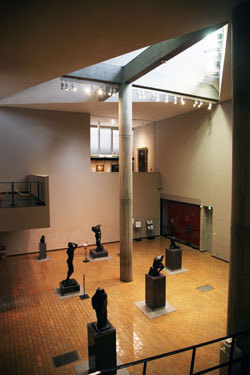 勒•柯布西耶(Le Corbusier、1887-1965)出生于瑞士,是一名活躍于法國的建築家,和弗蘭克•勞埃德•賴特、密斯•凡•德•羅一起被稱為近代建築的三大巨匠。他的作品運用鋼筋混凝土、排斥傳統的裝飾性、是所謂的現代主義建築的第一人。他在作品中采用多米諾系統僅通過樓板、柱子、樓梯等構成,作為新建築5個要素是具備底層架空空間、屋頂花園、自由的平面、水平連續的窗戶和自由的立面。國立西洋美術館是他的後期作品,在完成著名的《朗香教堂》(1955)之後,緊接著著手設計的。實施設計由後來成為他弟子的前川國男•坂倉准三•吉阪隆正等負責。主樓1層的入口大廳是最能夠感受到勒•柯布西耶建築理念的空間。在這個被命名為《19世紀廳》的空間裏,展示著羅丹的雕塑作品群,也是西洋美術館的代表性的展廳。