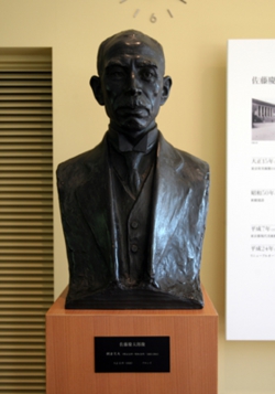 The inscription that publicly honors Keitaro Sato is exhibited along with his career at the Keitaro Sato Memorial Art Lounge.