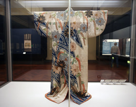 小袖 白綸子底流水松藤圖案/江戶時代•17世紀