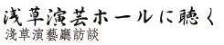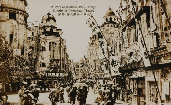 現在的淺草區域劃分,始自1873年(明治6)太政官發出的布告,當時宣布將廣闊的淺草寺變成淺草公園。1884年(明治17)又再細劃分成7個區並延用至今。淺草寺的西北一帶在江戶時代被稱作深山,曾經是曲藝場和街頭賣藝的繁華地區。1872年(明治5)這裏開設了遊藝場,這也就是當今日本最古老的遊園地淺草花屋敷的開始。淺草演藝廳和東洋館所在的淺草公園六區(淺草六區),是從現在的國際大道至1951年(昭和26)填平的葫蘆池爲止的,貫通南北的娛樂大街。(下段繼續)