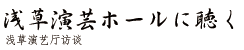 浅草演艺厅位于以表演艺术和文艺的中心地浅草六区,它伴随着历史的脚步,从明治、大正、昭和以及到平成的各个时代一起,共同承载着日本表演艺术的发展。如今,作为以表演落语(注:相当于中国的单口相声)为中心的演艺厅,和以对口相声、相声漫谈、小品、魔术等除了单口相声以外的表演艺术为中心的东洋馆(浅草演艺厅4层),观众们往来不绝人气十足。(台东区浅草1-43-12)