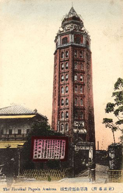 从右侧能看到凌云阁(通称浅草十二阶),像是1923年(大正12)关东大地震前的风景。