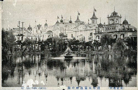 风景明信片上描绘着从前的浅草公园(台东区下町风俗资料馆藏)