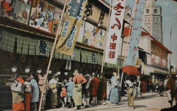 엽서에 그려진 당시의 아사쿠사 공원 풍경(다이토구립 시타마치 풍속자료관 소장)